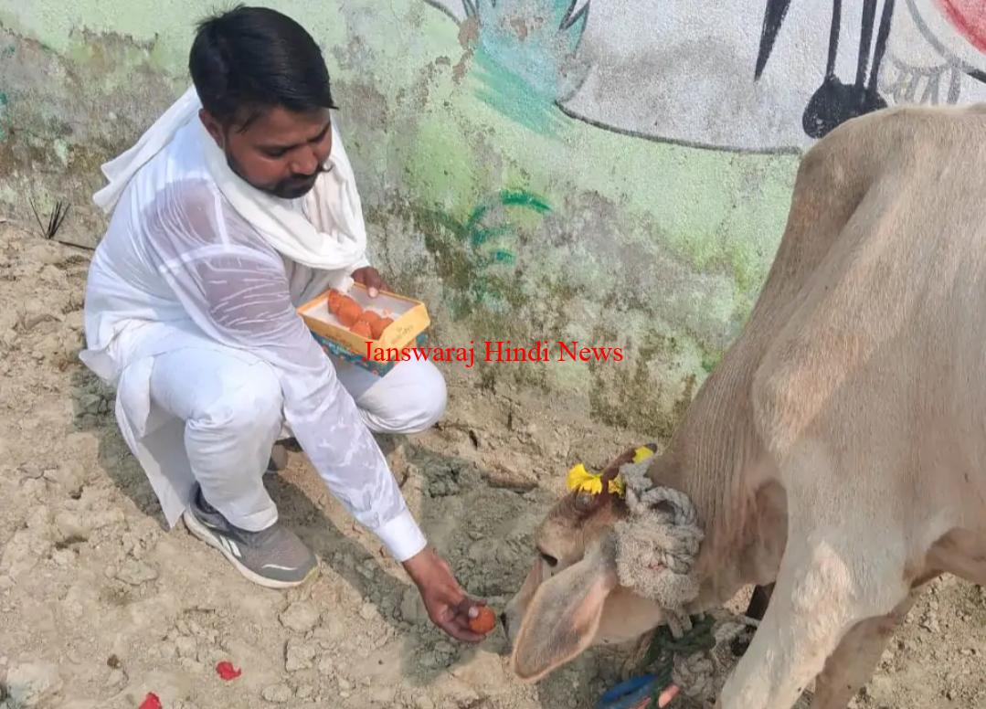 गौशाला में प्रधान प्रतिनिधि ने गोवर्धन पूजा का किया आयोजन