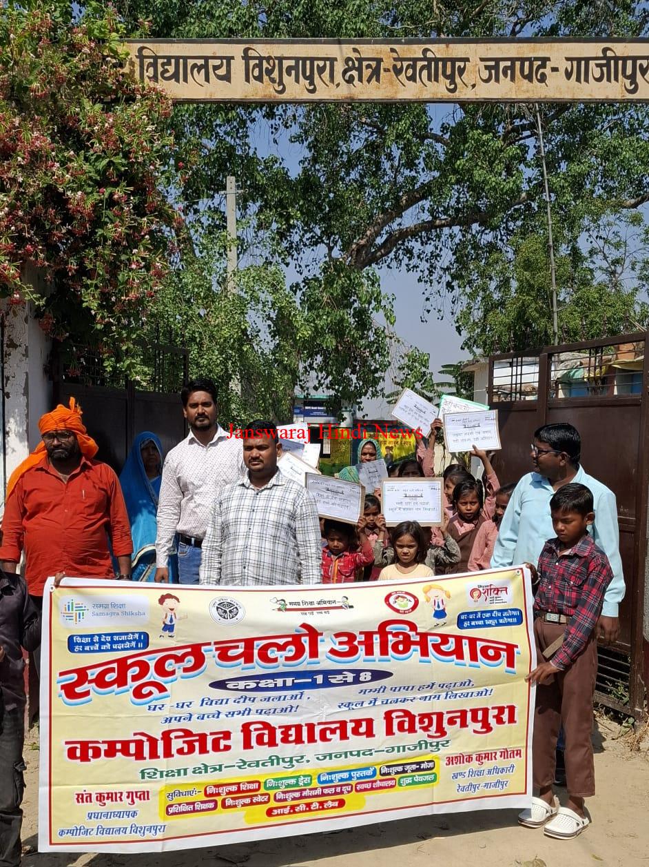 नगसर । कम्पोजिट विद्यालय विशुनपुरा में बुधवार को ‘स्कूल चलो अभियान’ के तहत एक जागरूकता रैली निकाली गई