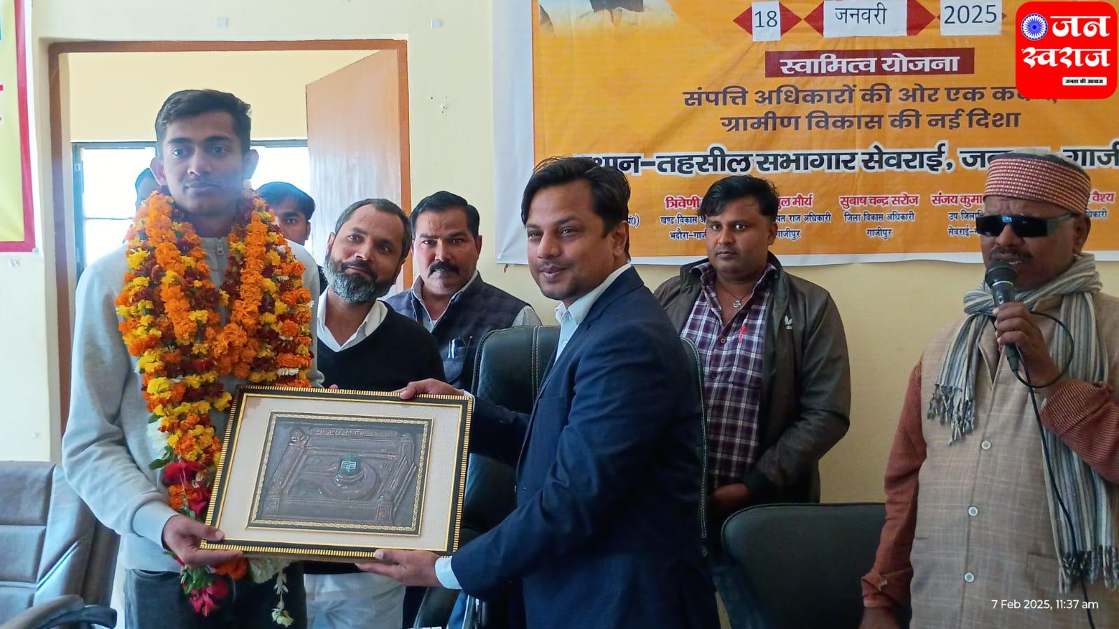 सेवराई। तेलंगाना में आयोजित नेशनल स्कूली वालीबॉल चैंपियनशिप में उत्तर प्रदेश को विजय दिलाने में महत्वपूर्ण भूमिका निभाने वाले गाजीपुर जनपद के निखिल सिंह को पहली बार अपने पैतृक गांव आने पर सेवराई तहसील के उपजिलाधिकारी व तहसीलदार ने फूल मालाओं व स्मृति चिन्ह देकर सम्मानित किया।